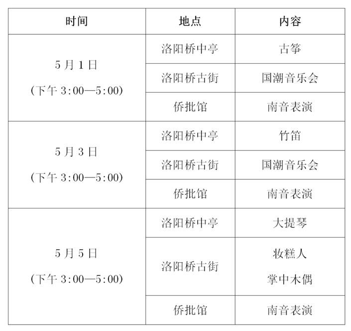 “五一”洛陽橋常態(tài)化演出活動安排表